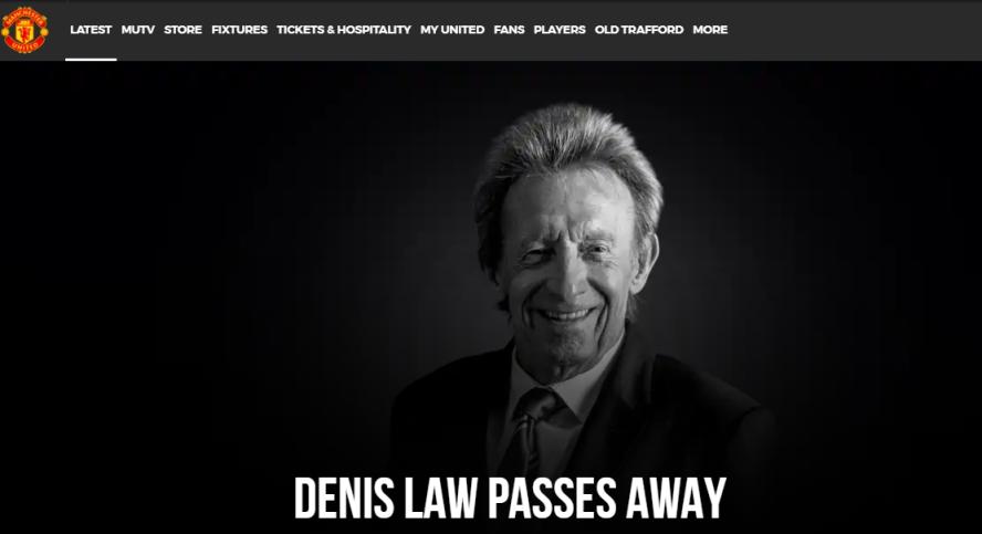 曼联俱乐部在官网报道丹尼斯·劳去世的消息。